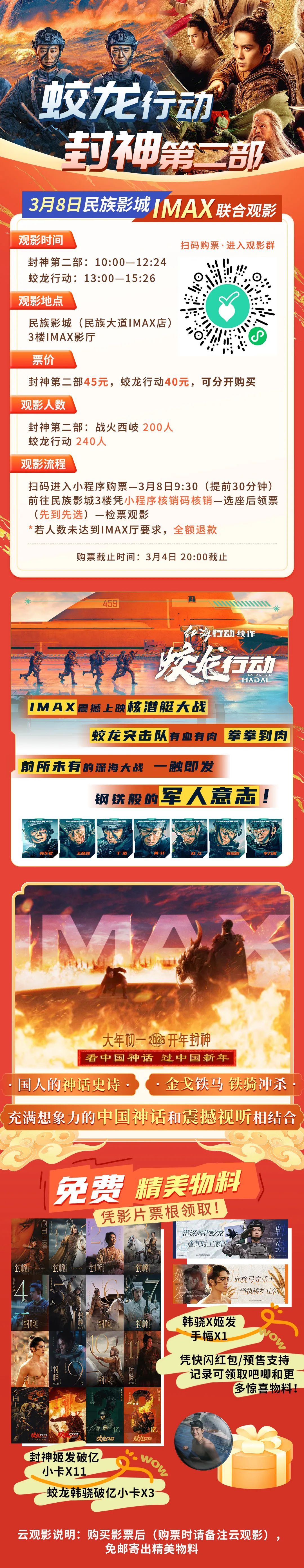 IMAX专场 | 《蛟龙行动》+《封神第二部:战火西岐》联合观影招募!