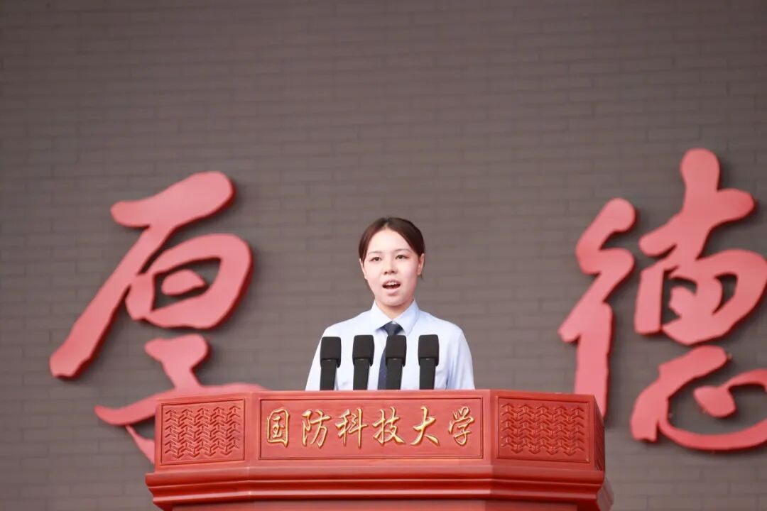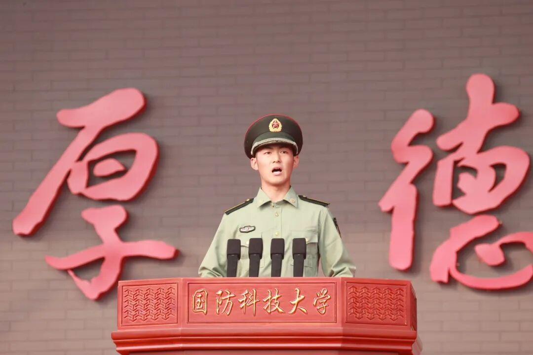 黎湘首先代表校党委和全校师生员工,对新学员入列表示欢迎和祝贺。指出,同学们以报国为志、以强军为念,从祖国四面八方汇聚国防科大,用滚烫青春书写时代担当。同学们中间有很多感人的故事:有的携手而来、共赴高地,四川绵阳中学的24名同学、湖南长沙一中的16名同学、新疆乌鲁木齐一中的10名同学,还有3对双胞胎兄弟、3位“张翔宇”,大家为着同一个梦想来到科大。有的传承家风、赓续荣光,张亦禾同学带着高外祖父的遗志,从地方一流高校考入学校读研;万佳乐同学的哥哥7月刚从学校毕业,他就追随兄长的脚步再入科大,完成了一场“使命接力”。有的志存高远、执着追梦,刘源同学高中三年每年暑假都到学校北大门打卡,终于如愿而至;王嘉仪同学怀着对科大的执着向往,虽因体检遗憾落选,但最终以无军籍学员身份圆梦。还有的自我加压、快速成长,哈萨克族同学巴合加那提,无论是内务、队列还是体能、战术等,都非常突出;陶翰元同学严格自律、苦练体能,入学不久三公里就达到11分34秒;李基业同学在《国歌》的感召下努力追寻更好的自己,成为学习之星。这样的故事还有很多,在同学们的身上,看到了新时代青年的使命担当和远大志向,也看到了强国强军、民族复兴的希望之光,为大家点赞!