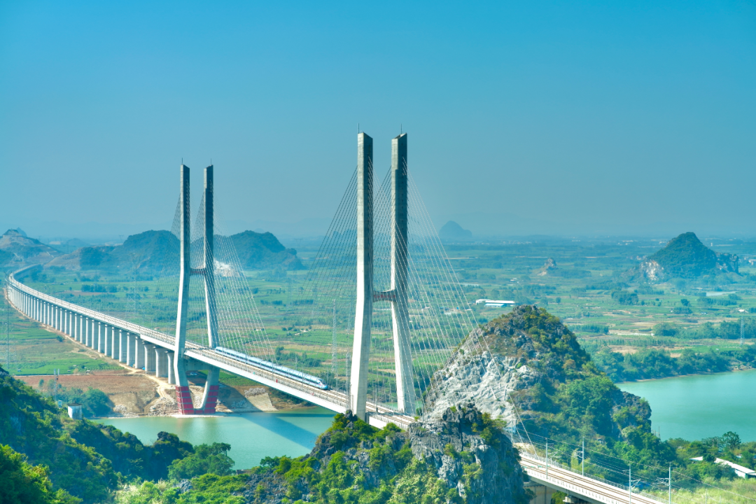 自2024年12月30日南珠高铁南玉段正式开通运营,南宁市辖区内在营高铁7条,运营里程增长至659公里,形成了“六向辐射”快速铁路网。