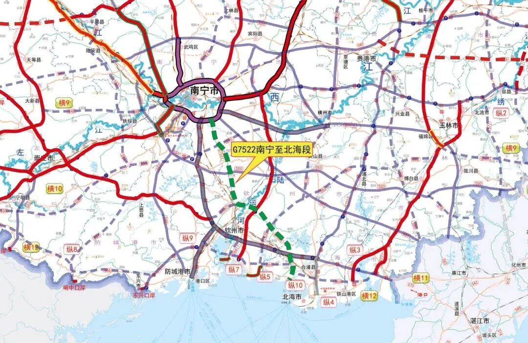G7522贵阳—北海公路(南宁至北海段)主线全长152.92公里,起点位于南宁市邕宁区屯麻村,止于北海市合浦县。建成后将显著提升北部湾城市群融合水平,强化南宁对周边区域的辐射带动作用。