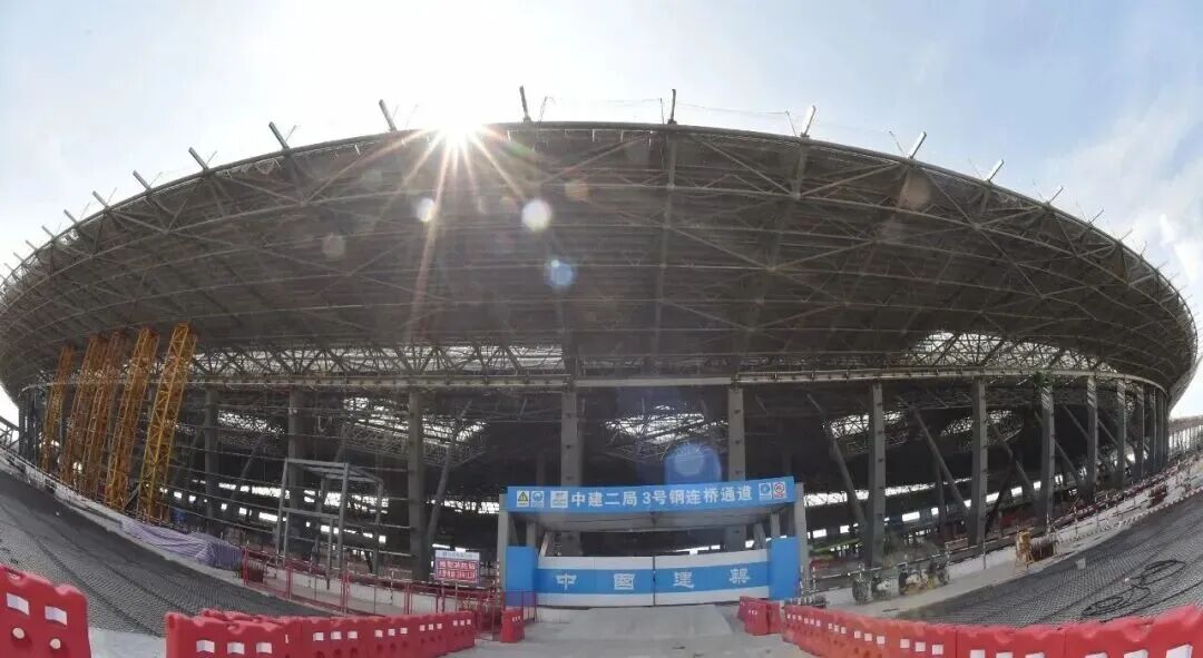 目前,T3航站楼中央区钢结构主体顺利封顶,正进行航站楼金属屋面、幕墙、机电设备安装建设等工作。