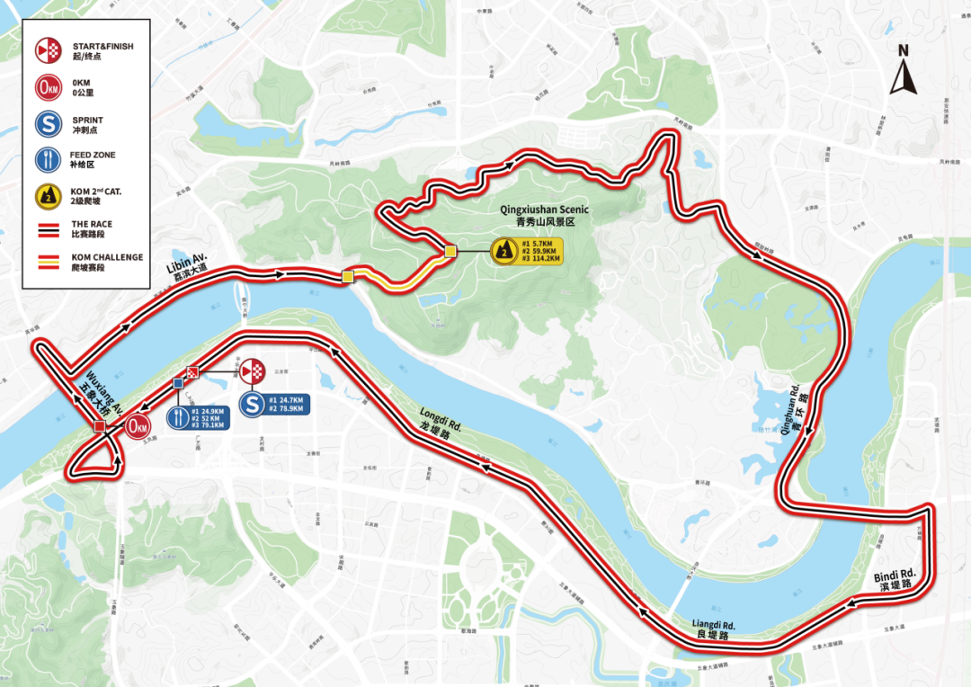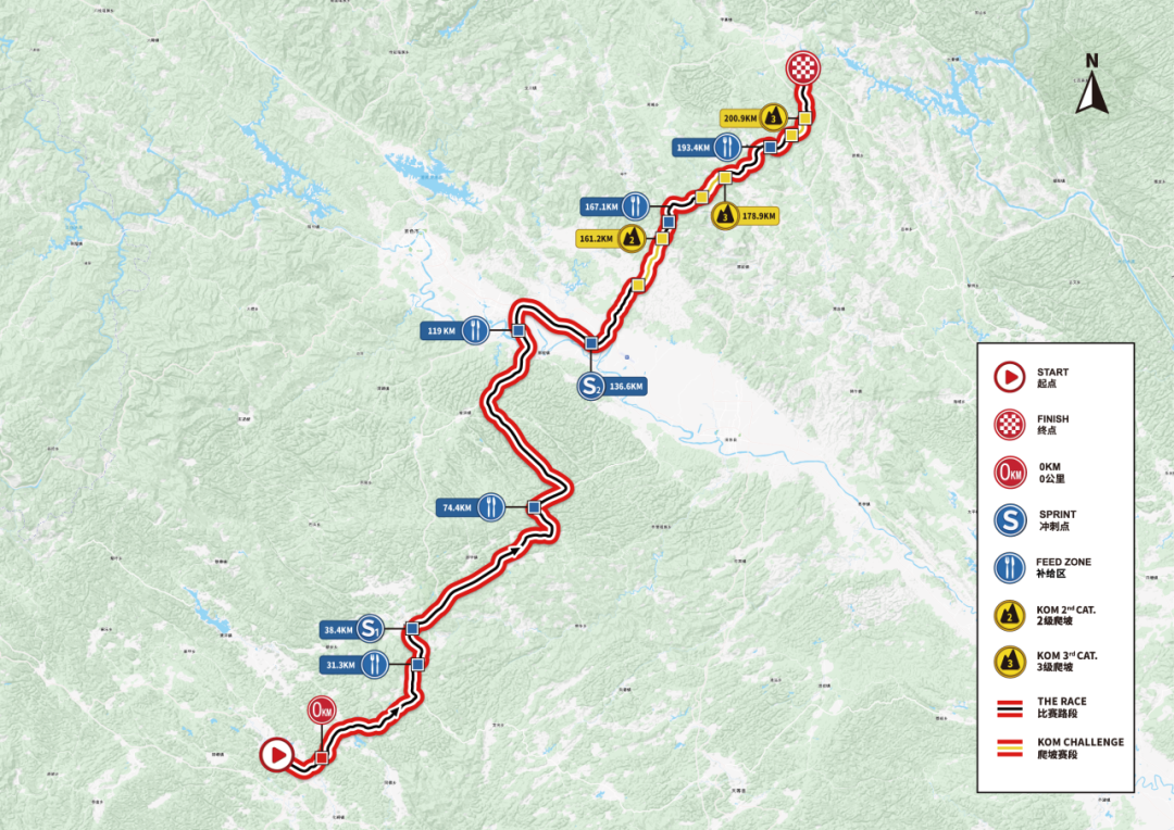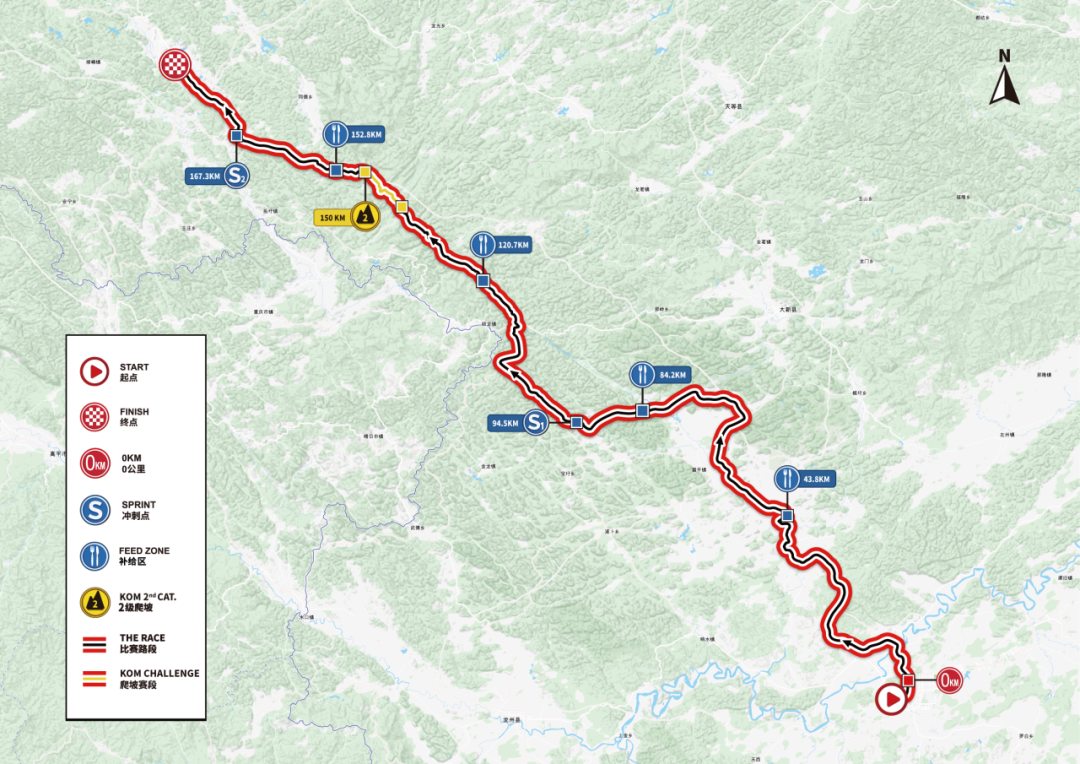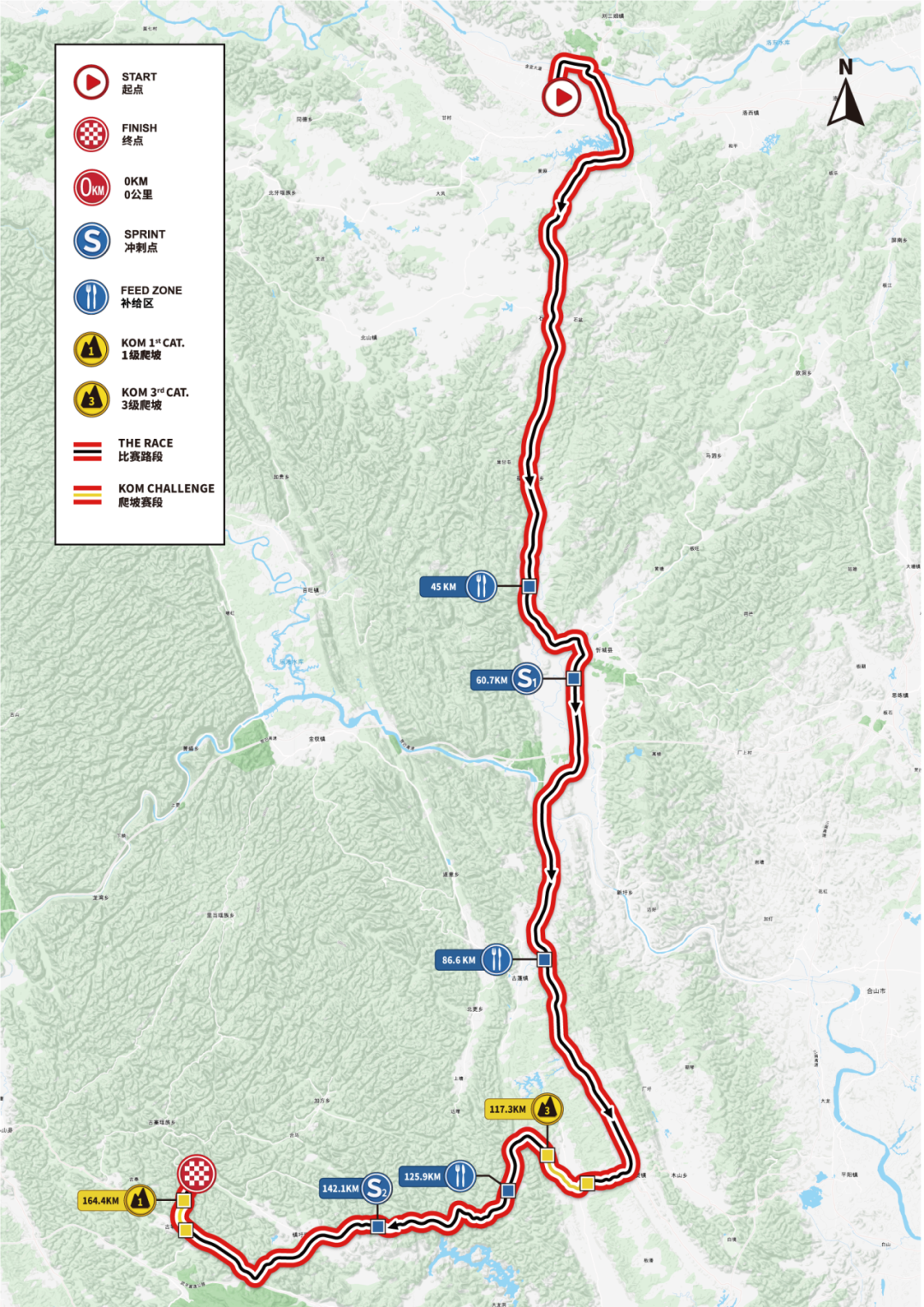 这一路地形起伏不断,设2个途中冲刺点及4个爬坡点,使这场跨越176.3公里的赛程充满挑战。