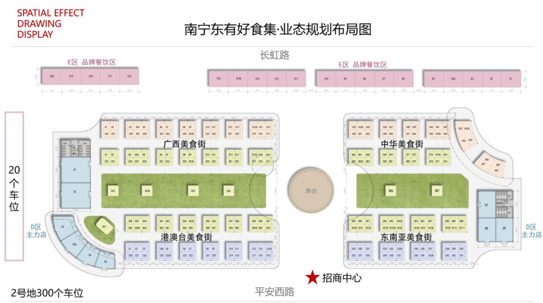 平安西路一侧,有个临时搭建的“南宁东有好食集”招商中心,在这里我们得到了关于该项目的更多一手资料。