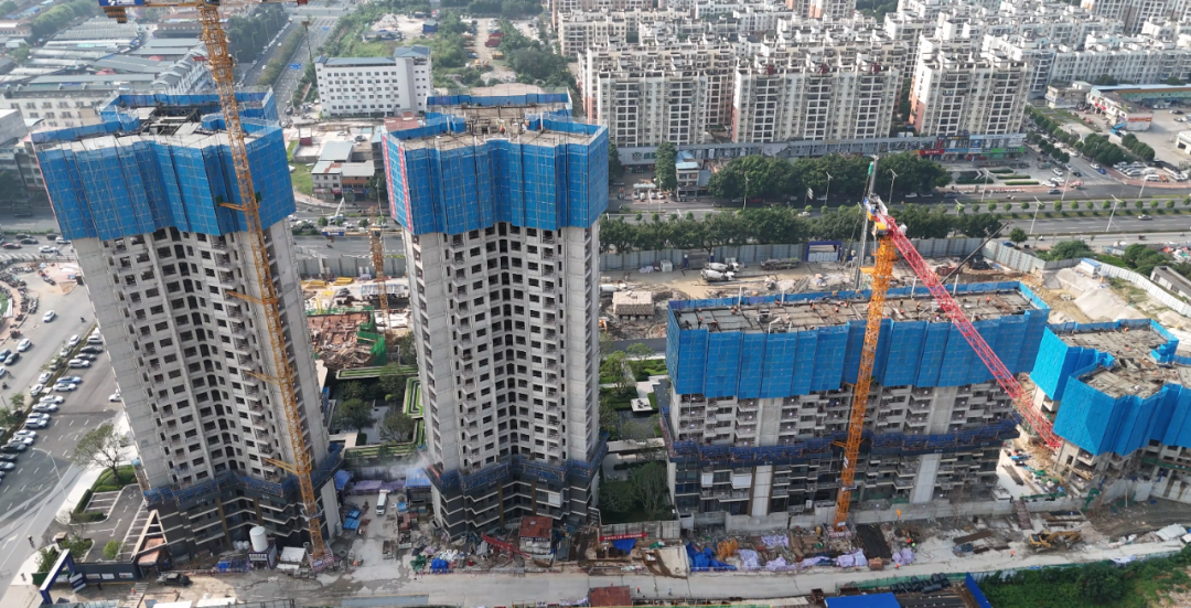 地块南侧紧挨着正在如火如荼建设的邦泰揽境项目,靠近建兴路的两栋楼进度很快,目测已经建到二十多层的高度。
