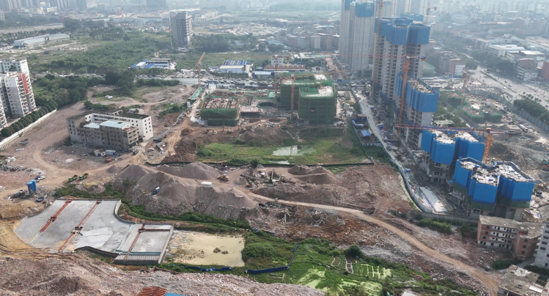 东侧是中兴小学沙江校区(在建),面积约42.52亩,拟建30个班,可提供1350个学位。目前项目2号教学行政综合楼、3号食堂午托楼已主体封顶,在进行装饰装修及室外配套工程,预计2026年秋季学期投入使用。