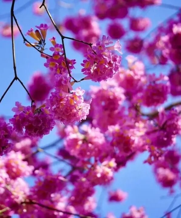 “树树风铃迎风摇,朵朵紫花碧云霄。”