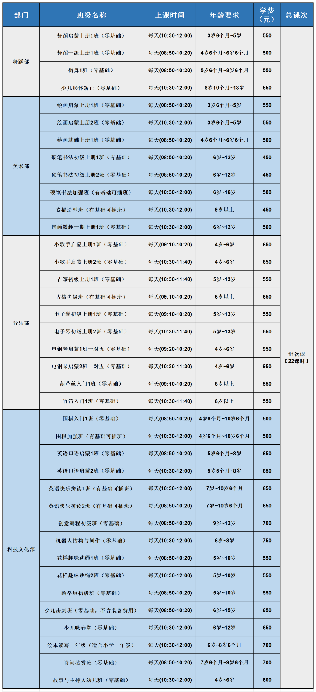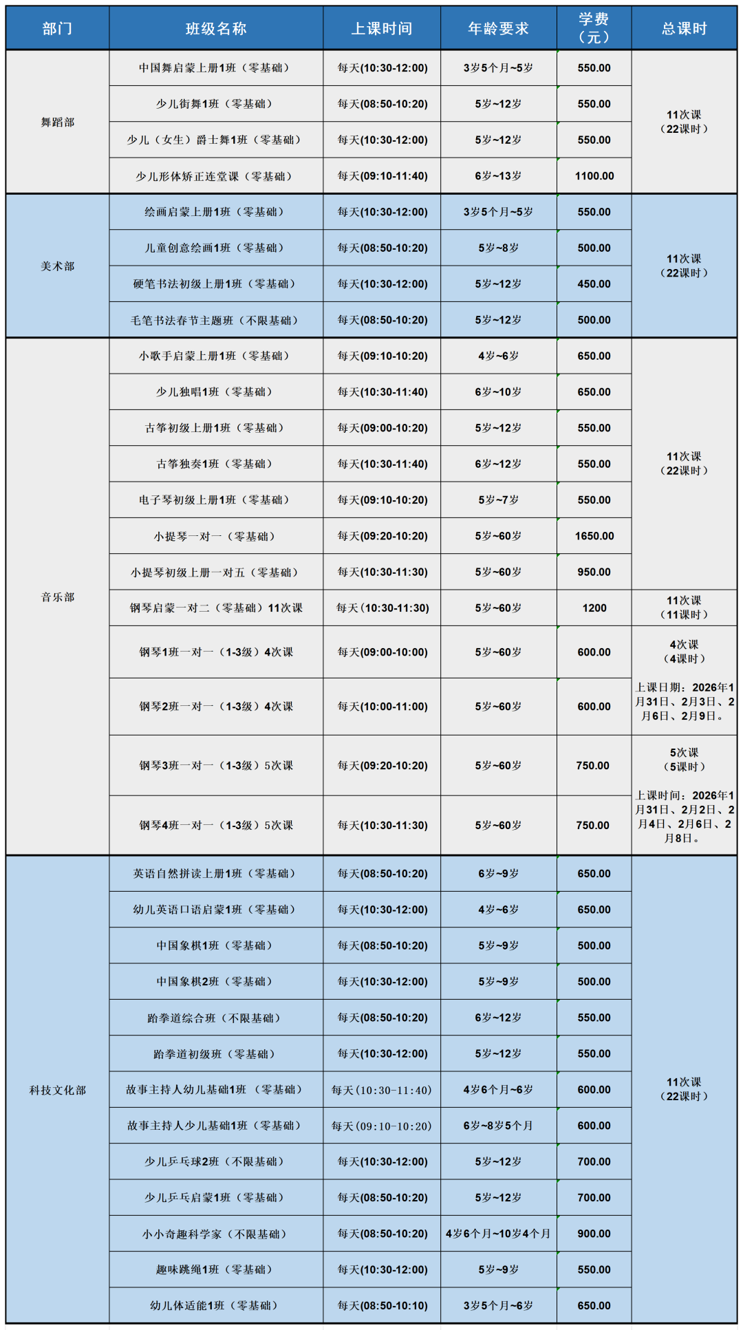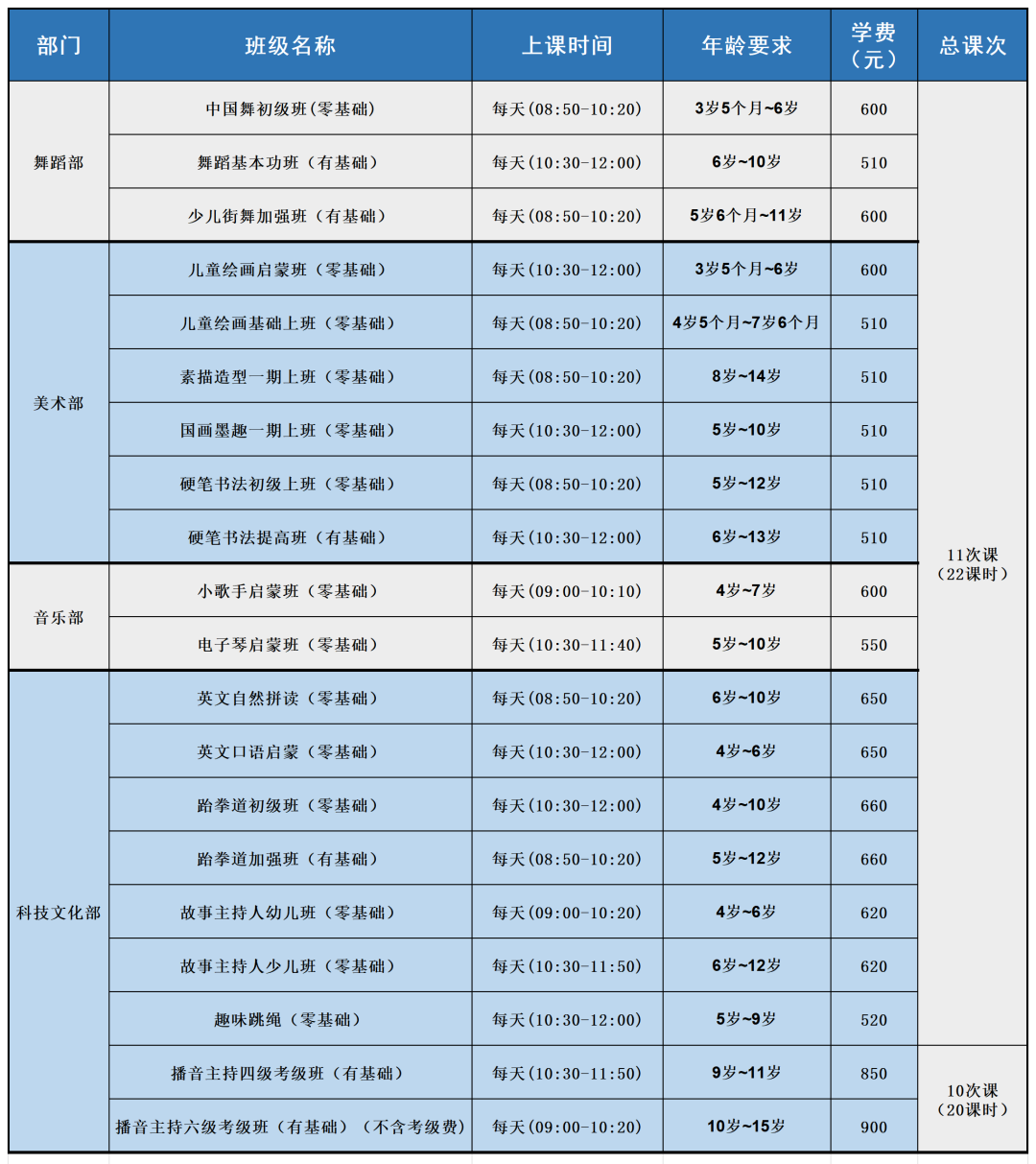 (注:各班具体上课时间,请点击报名详情查看报名信息,上课前不再另行通知。)
