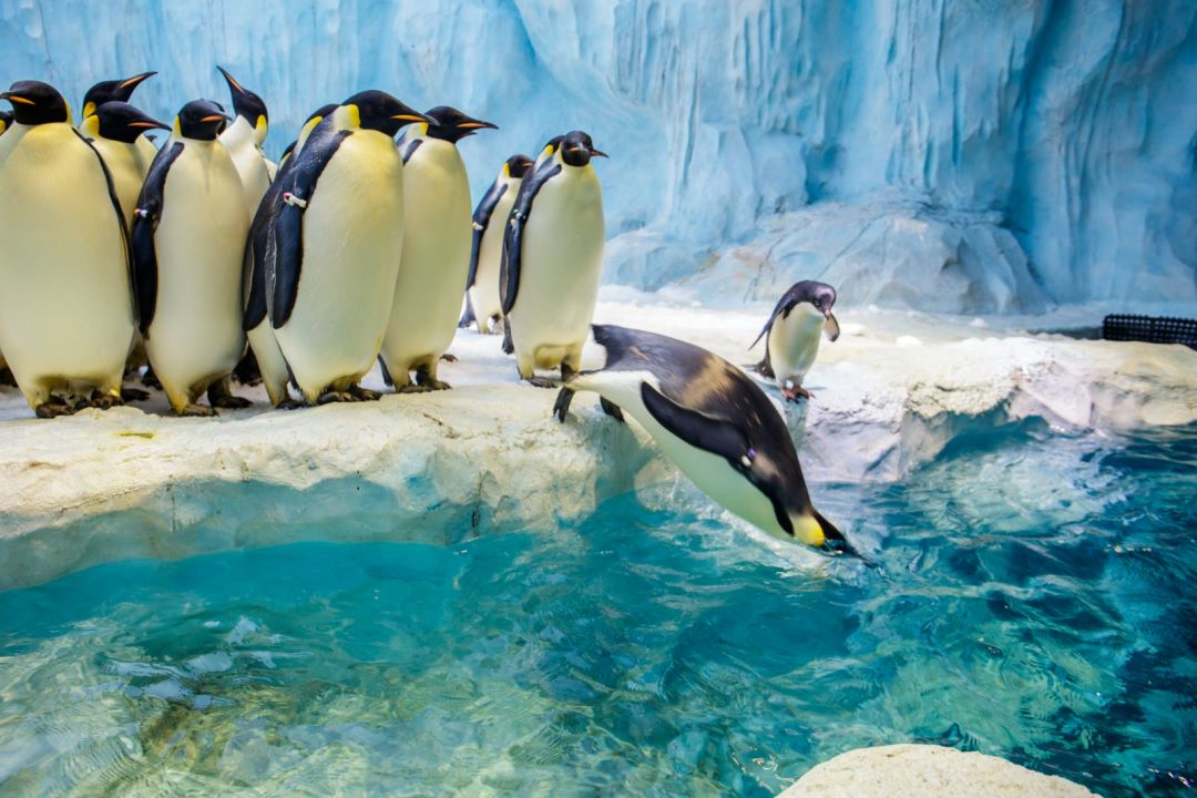 白天带孩子打卡毛茸茸的新生帝企鹅