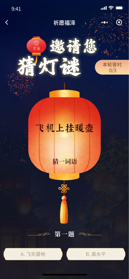 从满载祥瑞的“福禄之门”步入璀璨灯海之中,一幅幅喜庆的楹联承载着满满的年味与祝福,率先映入眼帘,与黄金广场的巨型走马灯相映成趣;走马灯内玲珑剔透的镂空雕花与灯光交融,呈现一派“葫光流转,万象呈祥”的意境。漫步凝晖路,“舞马踏福”灯组凌空飞驰,以三段不同主题诠释三重人生意境。