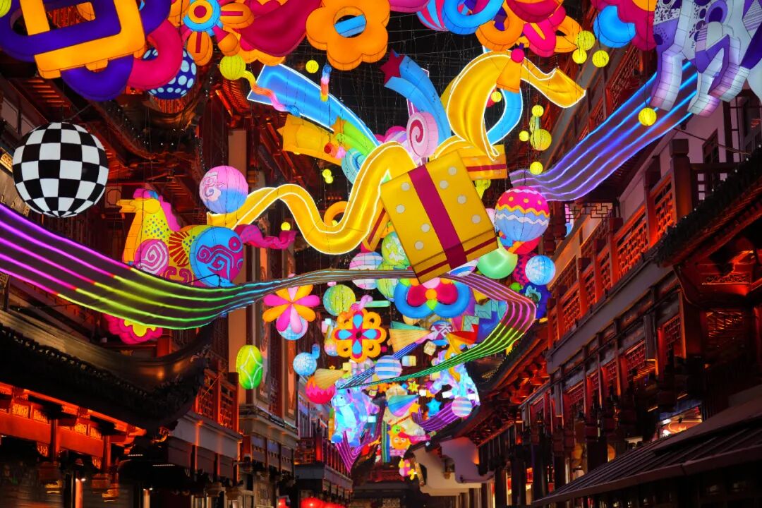 本届灯会从单一的豫园民俗艺术灯区,扩展至覆盖大豫园片区的六大主题灯区,形成一条从豫园延伸至BFC外滩的连贯观灯动线。