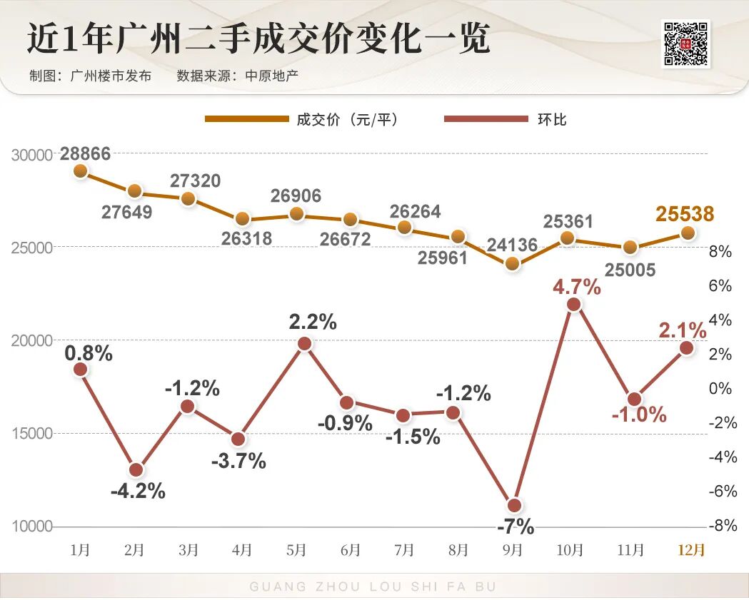 从监控数据来看,广州的二手房价格,在2025年第四季度已出现了企稳趋势。
