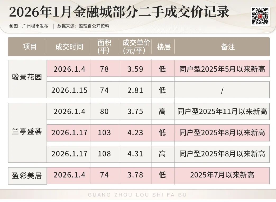 还有骏景花园,元旦过后小户型最高成交价也接近3.6万/平,追平2025年5月的价格。