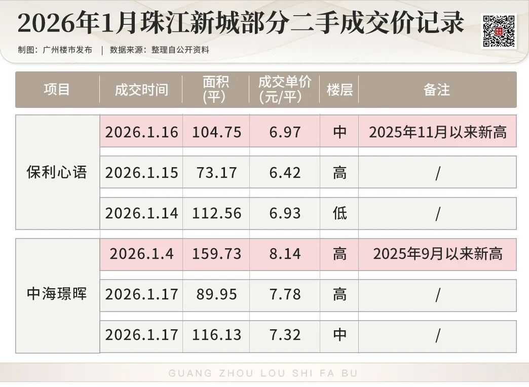 值得关注的是,这股回暖势头开年仍在延续。就比如珠江新城,量价双升的趋势依旧明显。