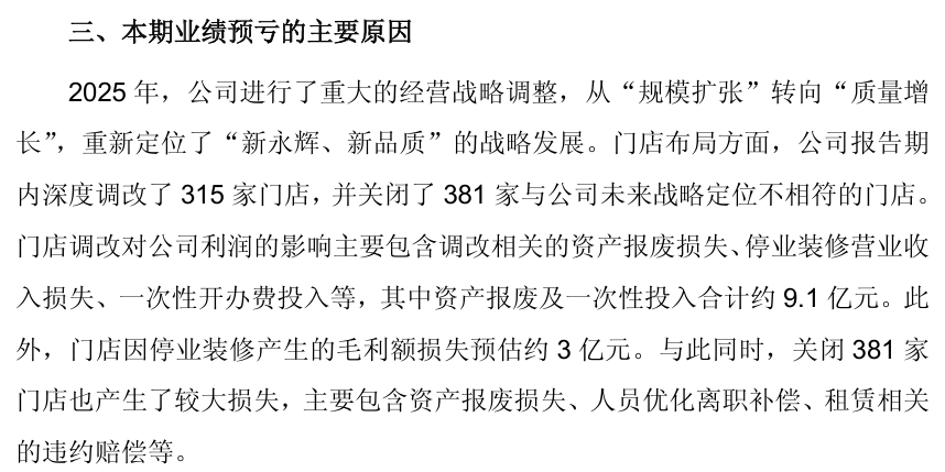 按照永辉超市的说法,业绩预亏的核心原因源于公司在2025年进行了重大的经营战略调整。
