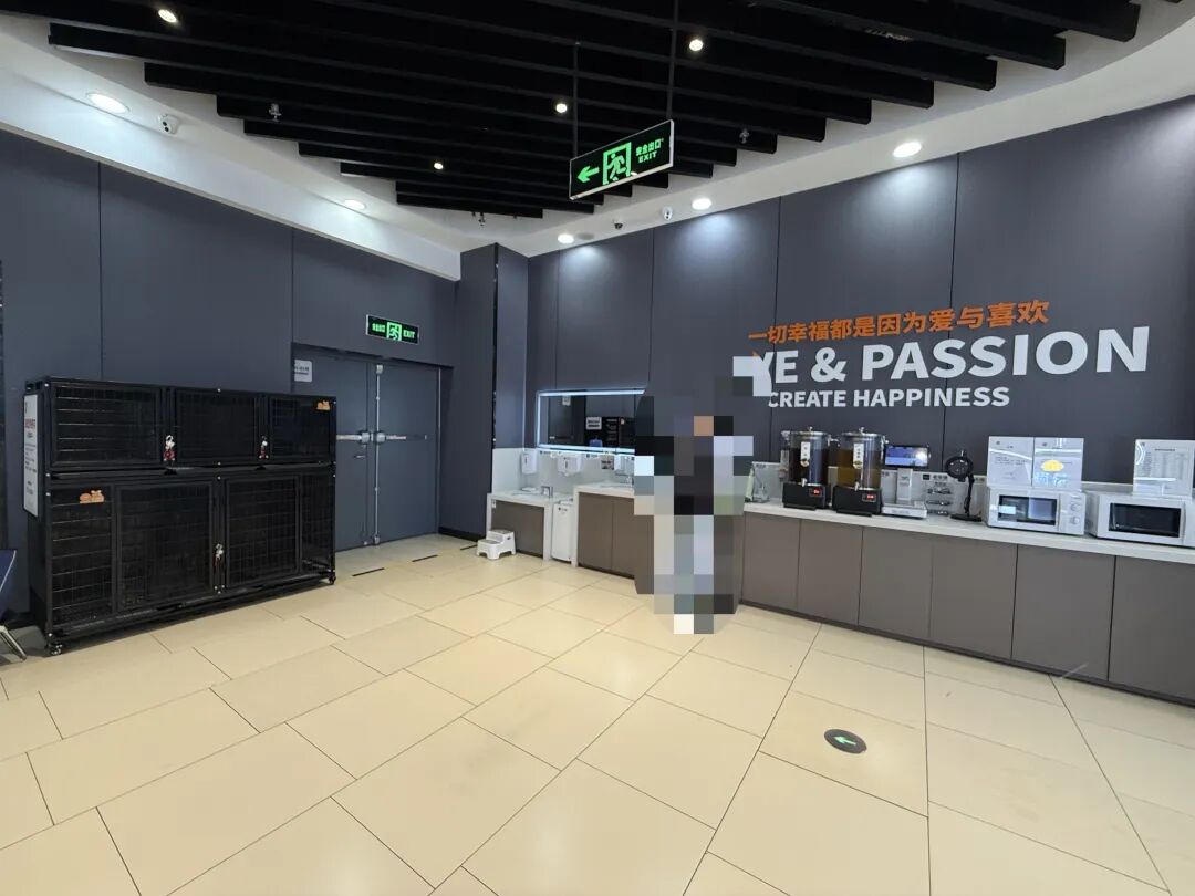 入口处依然是“胖改”标配的“便民小连招”,宠物寄存处、身高体重称等该有的都有。