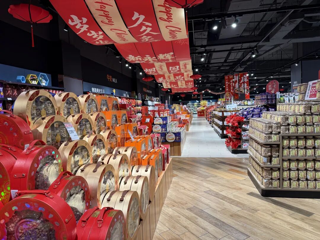 临近春节,超市在布置方面也进行了一定的调整,看起来年味十足。