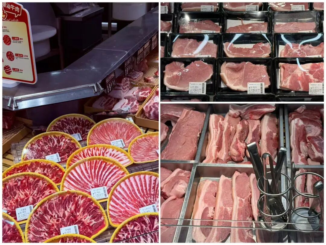 另外,肉品专区除了有提前包装好的商品之外,同时也有现切现称的猪、牛肉供应。