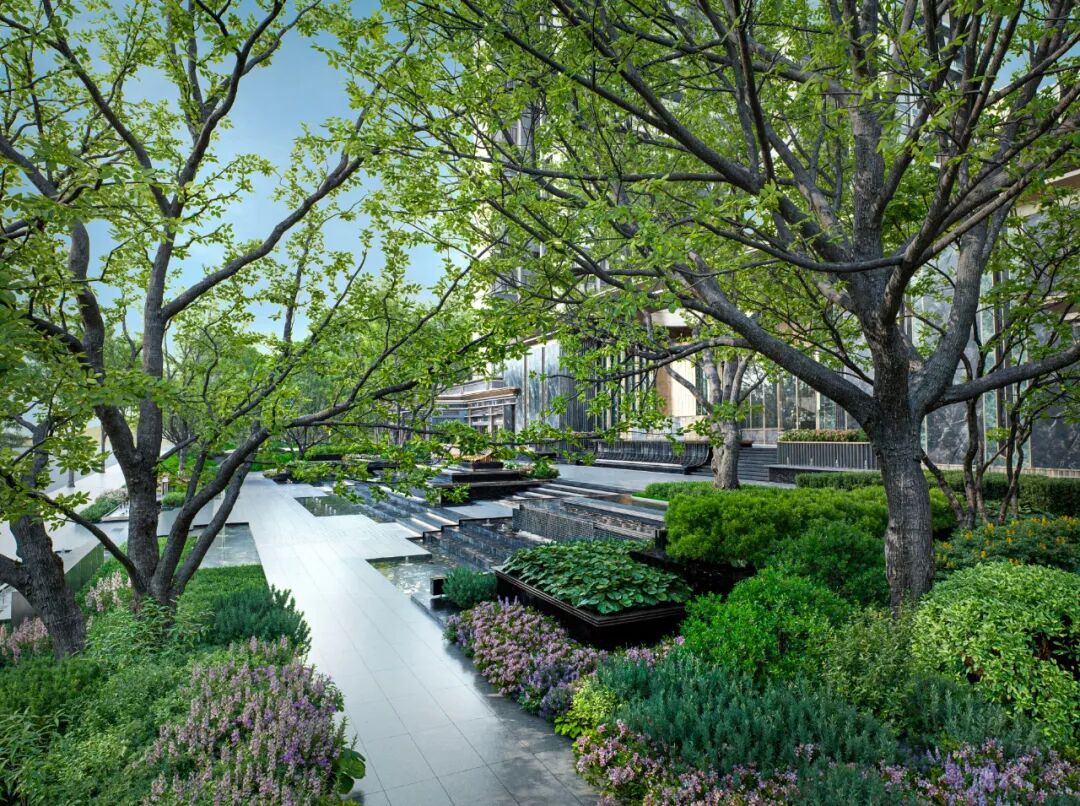 从现场能直观看到,园林示范区以宋式美学为基调,青瓦白墙的景观小品、蜿蜒的步道、层次丰富的绿植搭配,再加上点缀其间的水景与置石,把宋代文人喜欢的雅致与静谧感拿捏得十分到位。