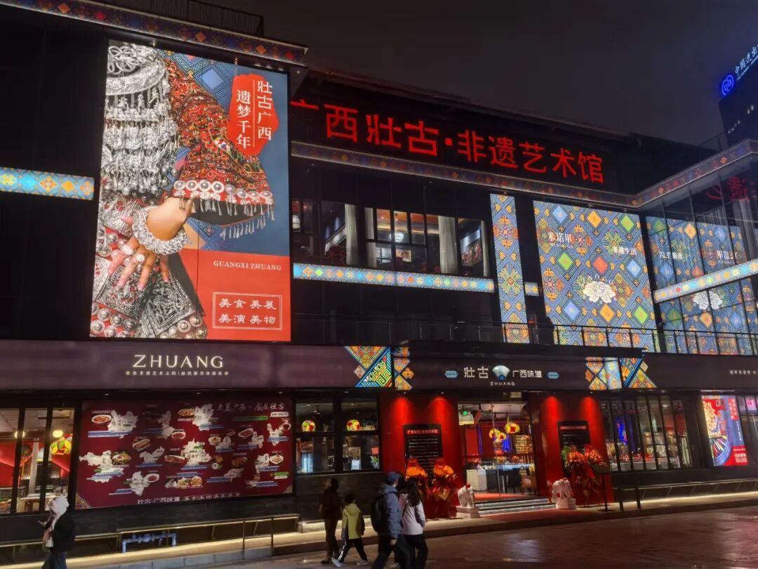 如何让广西非遗走出作坊、走向市场、面向世界,让文化价值转化为经济价值,是众多传承人及行业同仁的探索方向。广西壮古・非遗艺术馆的落成,正是这一探索的创新成果。场馆以 “非遗 + 餐饮” 为核心模式,将广西本土非遗、民族文化、12 个世居民族服饰、民族歌舞艺术、传统饮食等多元非遗元素融入经营全场景,实现了非遗从 “静态展品” 到 “动态产业” 的转变。