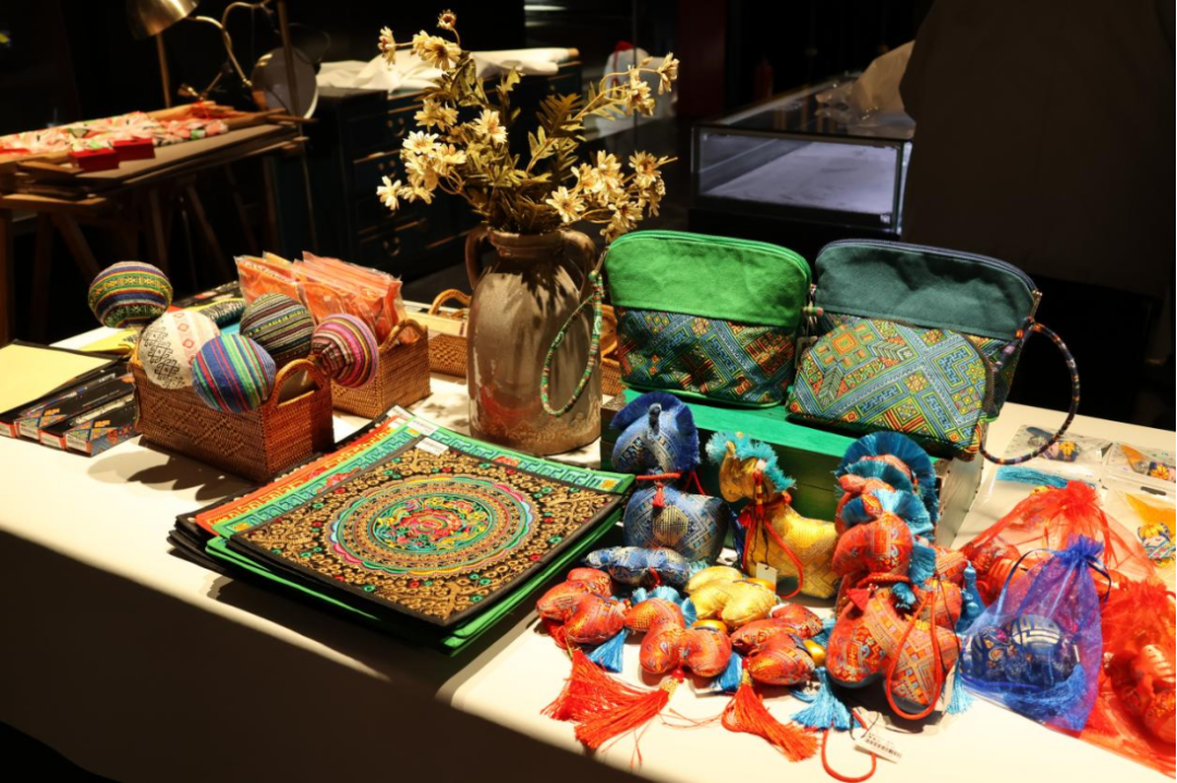 活动当天,从非遗体验、传统歌舞表演到非遗服装秀,每一个环节都彰显着 “跨界融合” 的核心理念。体验环节不仅有织锦、刺绣等传统技艺展示,更将这些技艺与现代生活场景深度结合 —— 嘉宾们体验制作的壮锦绣球可作为装饰摆件,锦绣抱枕能装点家居氛围,民族潮牌服饰让日常穿搭焕发出全新的气质。这些创新与融合,让非遗技艺不再是脱离生活的 “古董”,而是兼具实用性与观赏性的文化产品。这一设计背后,是艺术馆对非遗市场化的深刻思考:只有让非遗融入日常消费场景,才能真正实现可持续传承。
