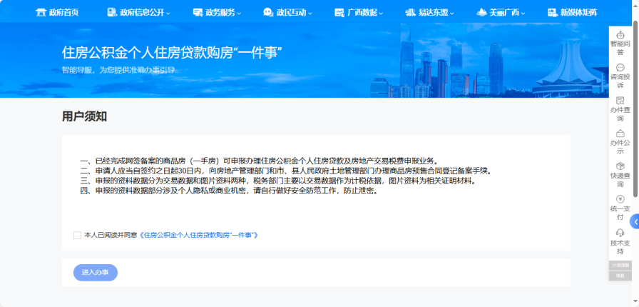 为方便缴存人高效便捷办理住房公积金个人住房贷款业务,现全面推行线上办理渠道。您可通过“广西数字政务一体化平台”或“智桂通”移动端,在线提交住房公积金个人住房贷款信息及相关申请材料,让您足不出户即可完成贷款申请,接下来让小编为您详细介绍办理流程吧!