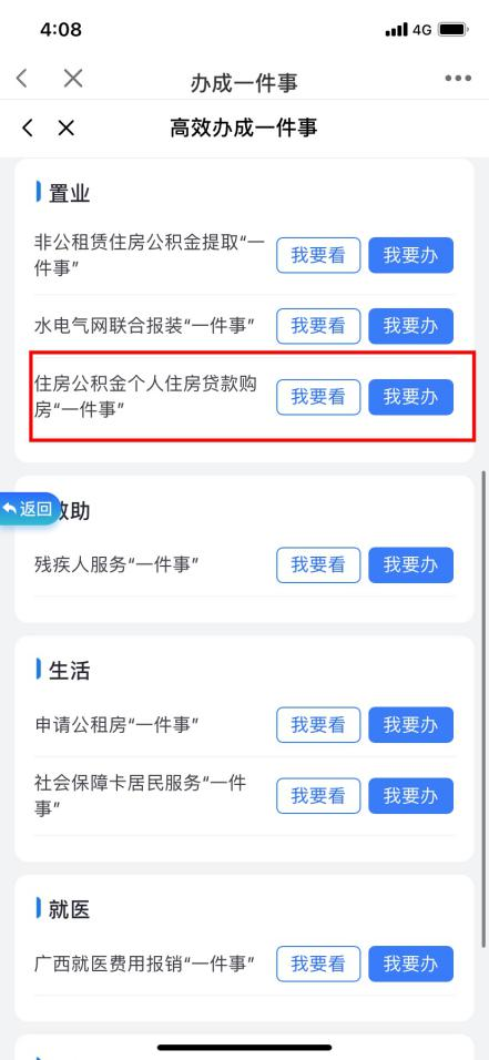 “智桂通”移动端“办成一件事”专区找到“住房公积金个人住房贷款购房‘一件事’”,点击“我要办”。已完成网签备案的商品房(一手房)方可申请办理住房公积金个人住房贷款业务。