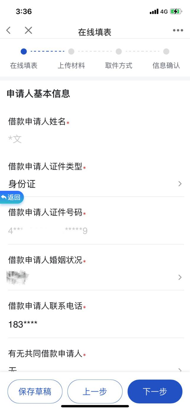 在线填写各项信息后,点击“下一步”。