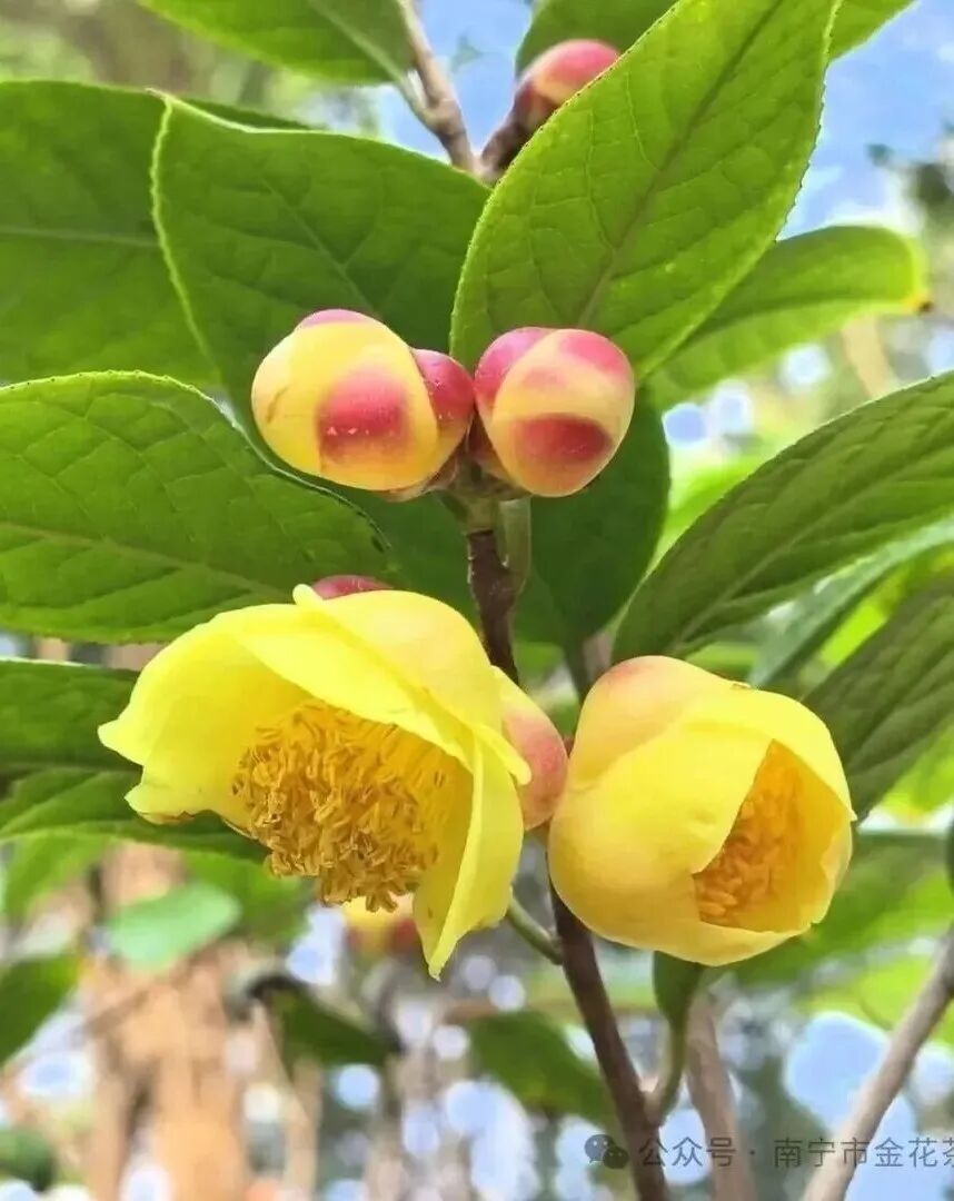 除了金花茶,茶花精品区、茶花苑、百韵长廊,三大核心区域更是繁花似锦,多个品种的茶花同时开放,或艳若朝霞,或素若月华,勾勒出五彩斑斓的春日画卷。