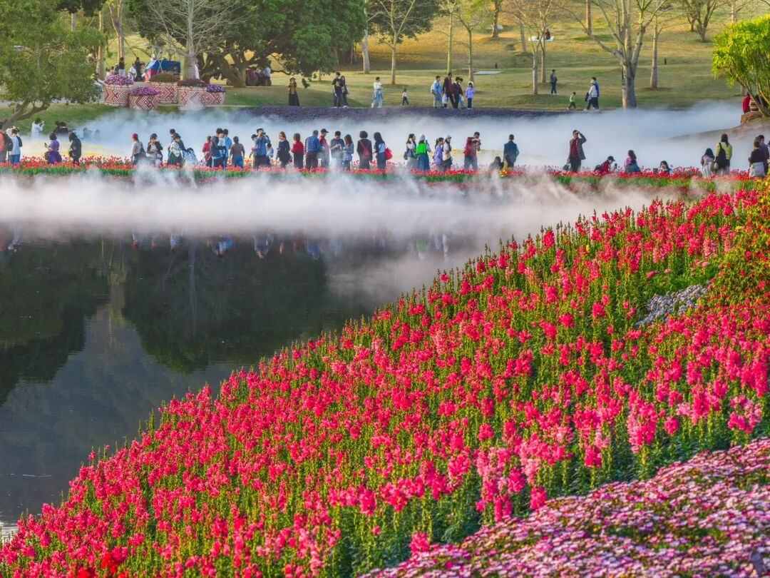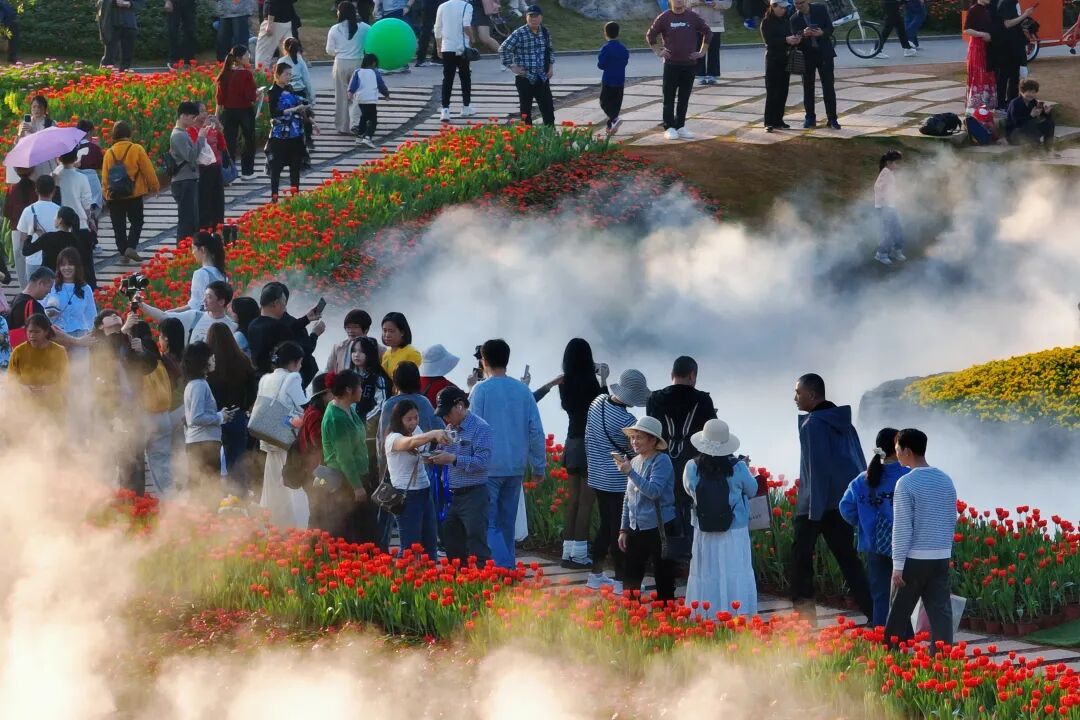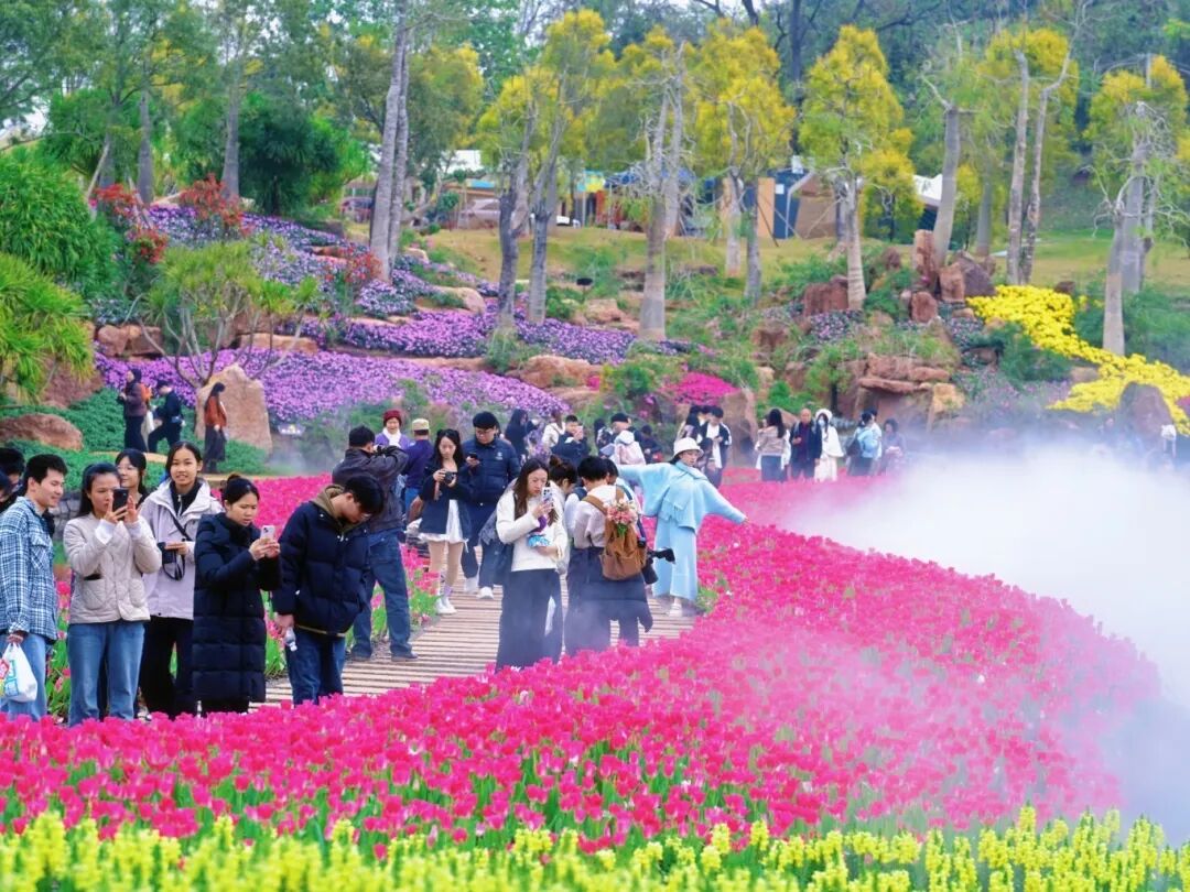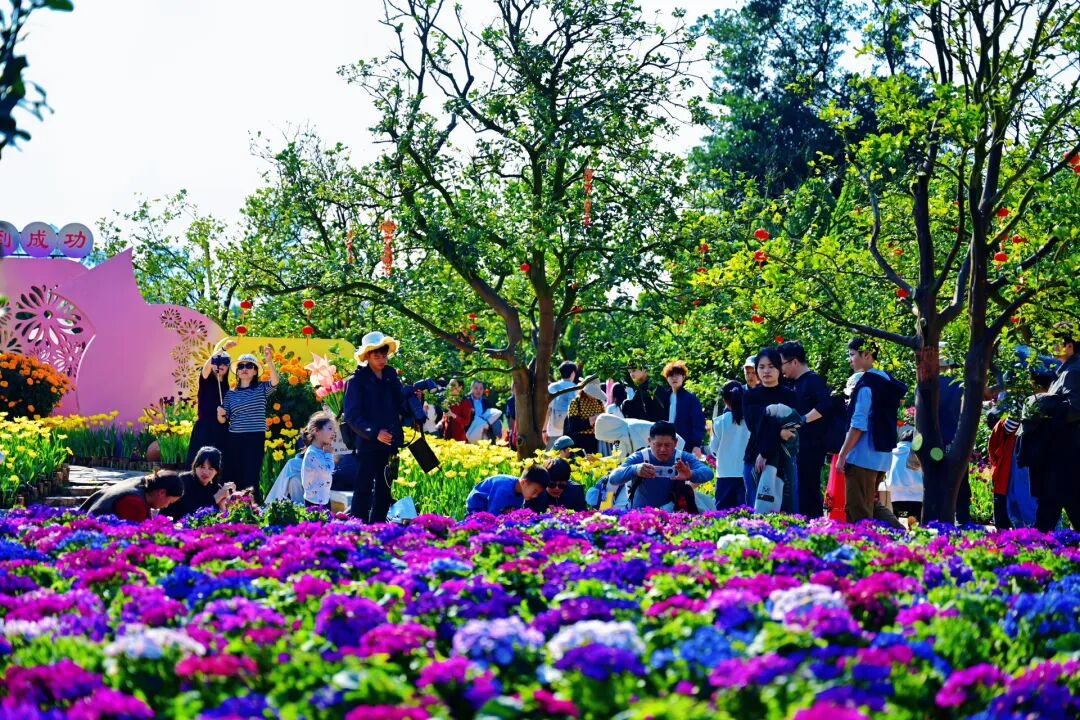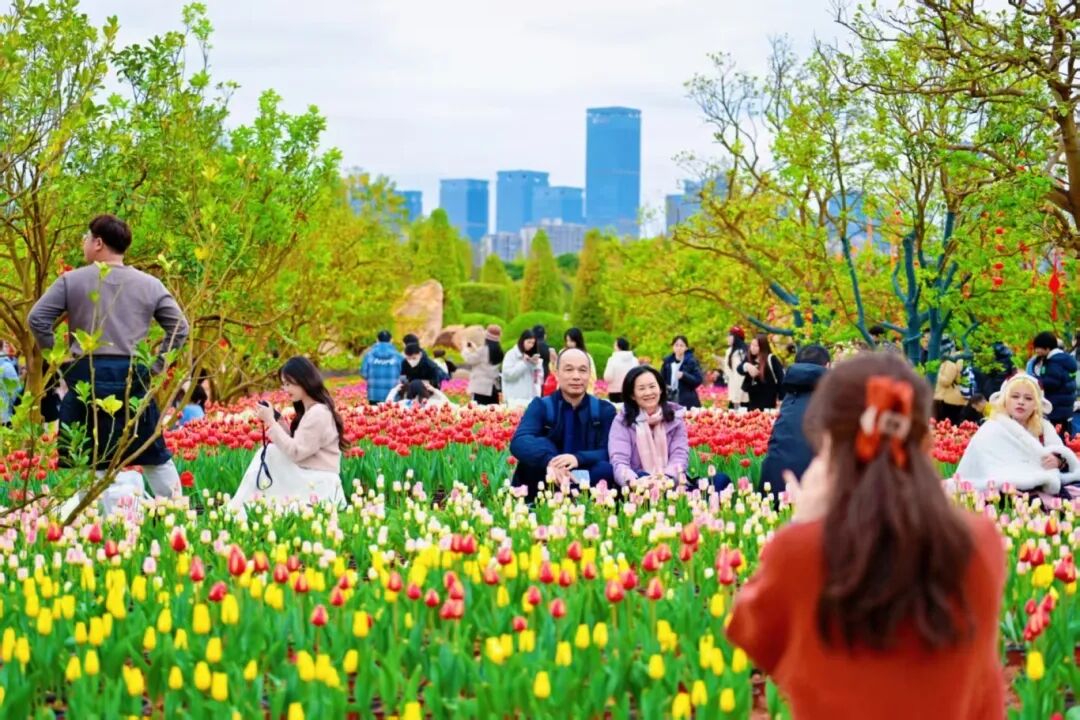白天,三大花事活动满足不同审美需求:东区山水郁金香观赏文化活动以浪漫造景吸引年轻人打卡;西区新春百花观赏文化活动以喜庆小品营造家庭欢聚氛围;青秀山赏梅季则为寻求静谧的游客提供诗意空间。