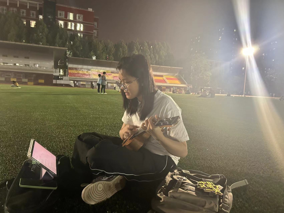 陈洁莹在操场唱歌,被路过的朋友拍下